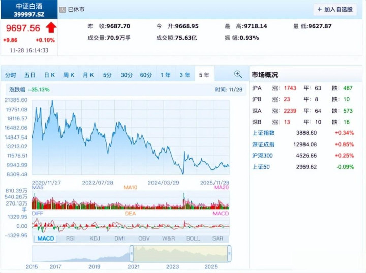 2021年还喊着“买酒等于躺赢”,2025年白酒就成了投资者口中的“老登股”。这五年时间,中证白酒指数从高点跌超50%,跌得比不少小票还惨。